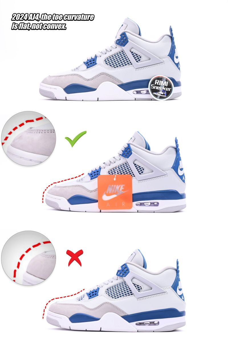 In 2024, the shape of all AJ4s has changed; the curvature becomes inclined. It's not bulging.I have made more detailed comparison pictures, which I will post and share with you.Therefore, my shoes are better and more distinctive than others'.